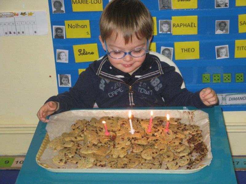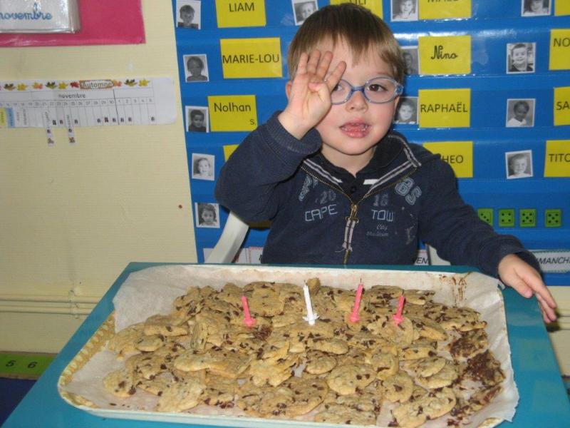 Anniversaire du mois de novembre 22 novembre 2016 Anne S. Non classé 0 Seul ALESSIO est né au mois de novembre. Il a donc pu souffler ses bougies lundi 21 novembre. [Show thumbnails] Il a eu 4 ans! BON ANNIVERSAIRE! Ensuite, nous avons pu partager les cookies qui avaient été préparés le matin par des petits groupes d’enfants.