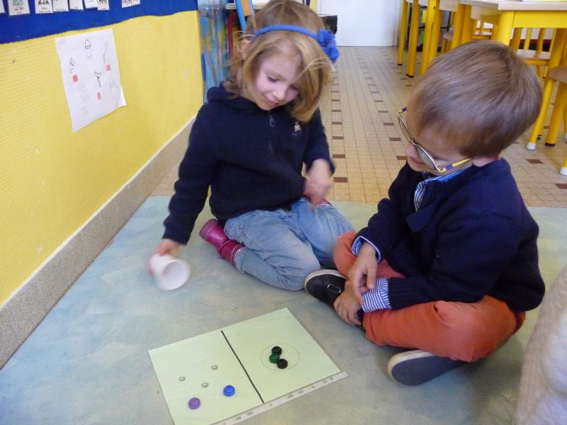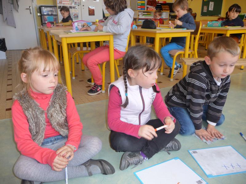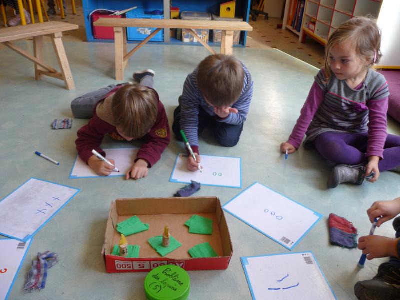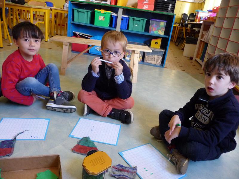 Cette semaine, les Grands ont joué au jeu des lapins afin d’apprendre  à trouver le complément à 5 d’un nombre (combien faut-il ajouter à un nombre pour obtenir 5).