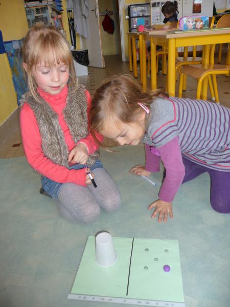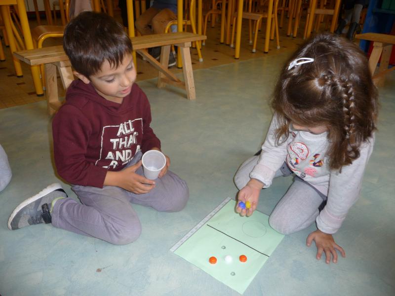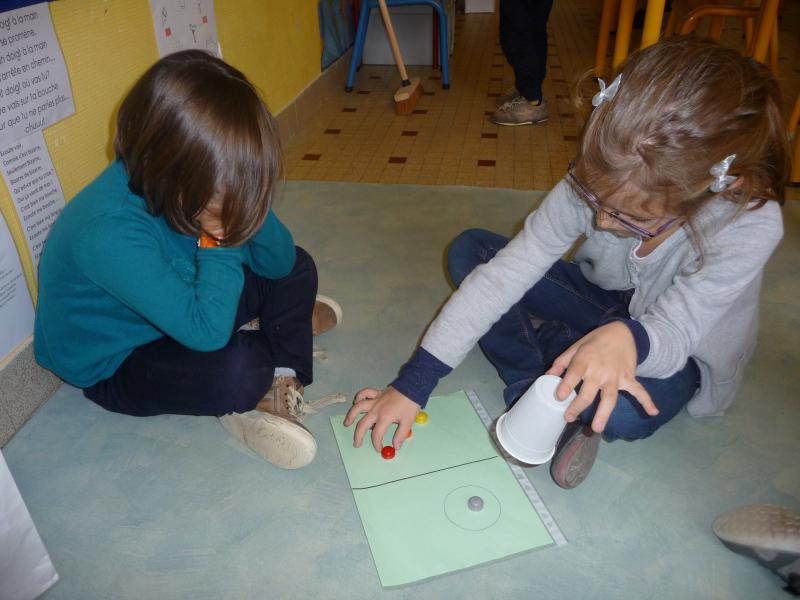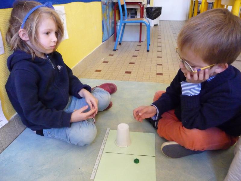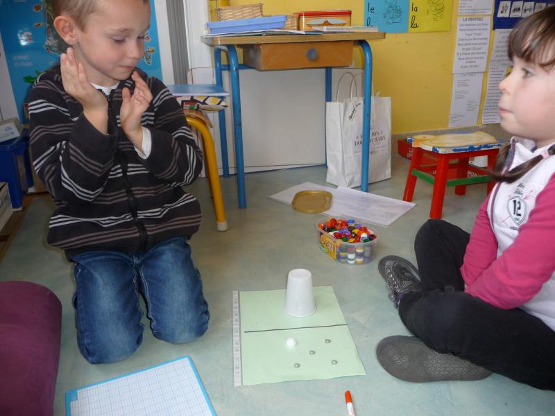 Ils doivent donc se représenter mentalement la quantité 5 pour savoir combien de lapins sont dans le terrier… c’est plus difficile ! On vérifie en soulevant le gobelet.