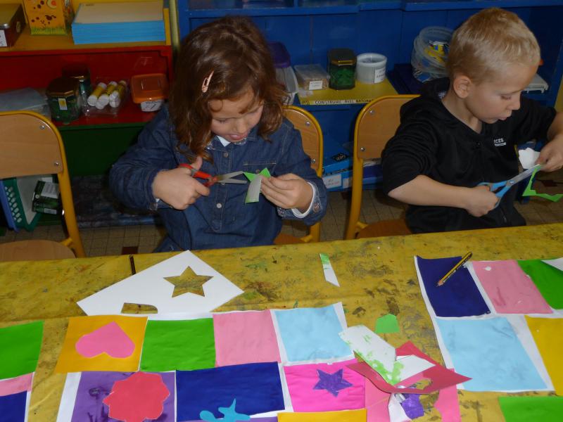 Puis nous avons tracé (à l’aide de gabarits), découpé et collé ….
