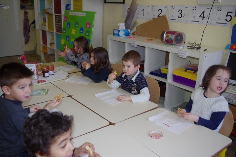 Lundi : journée en rose et marron. Nous avons goûté des radis et du chocolat.