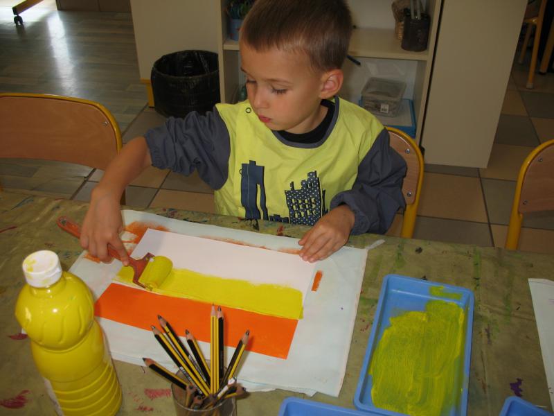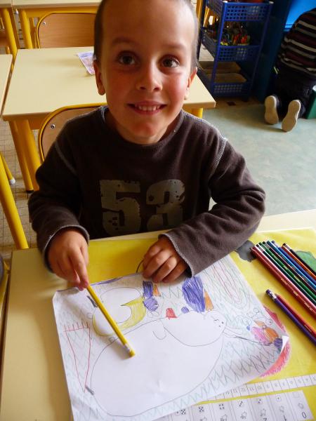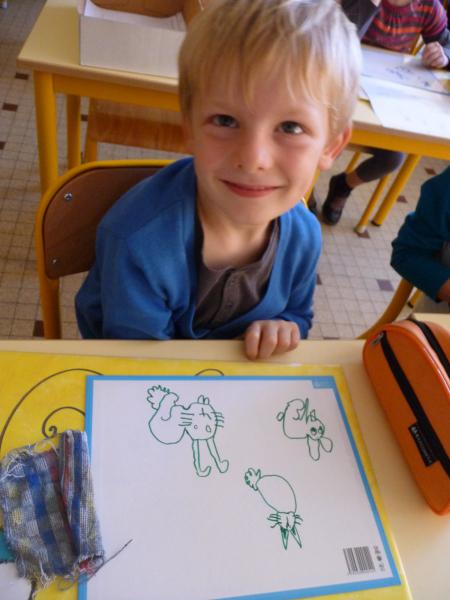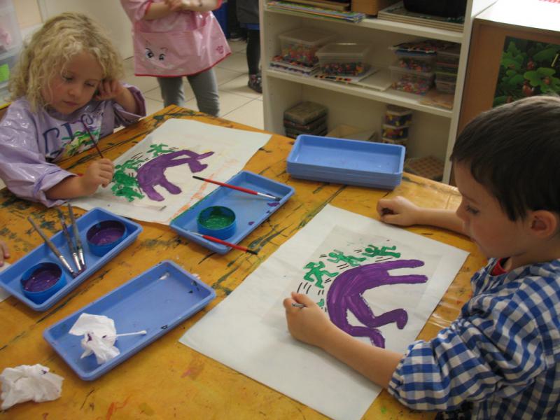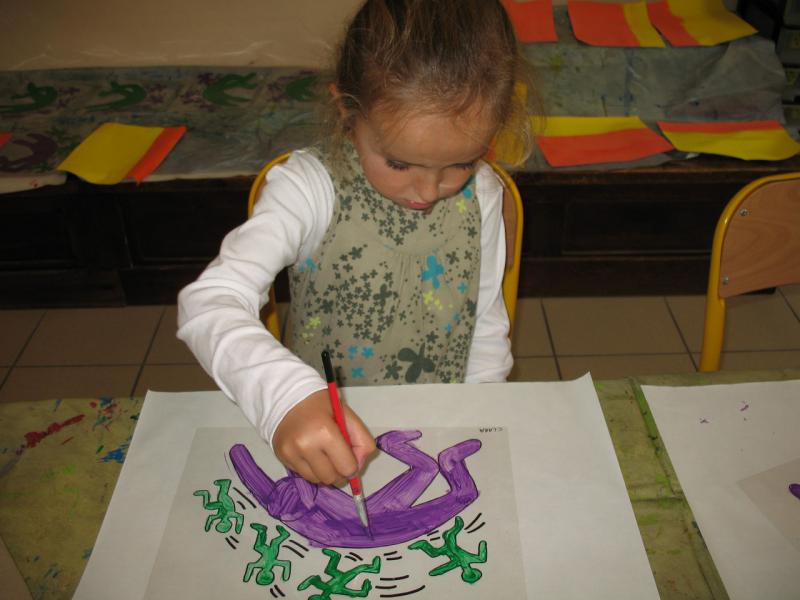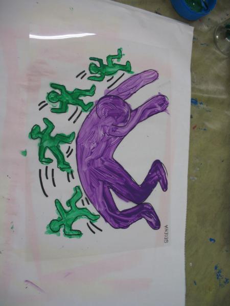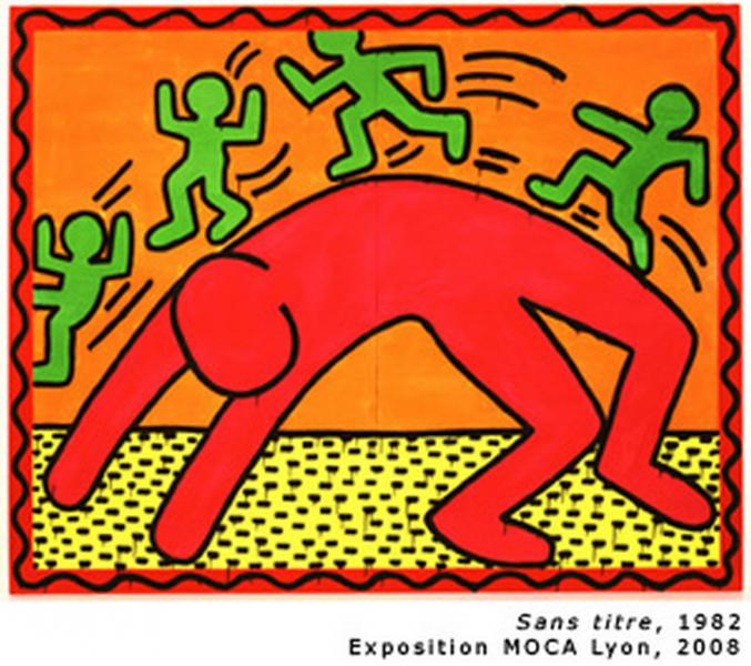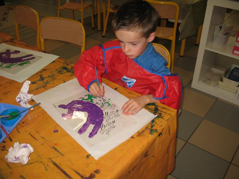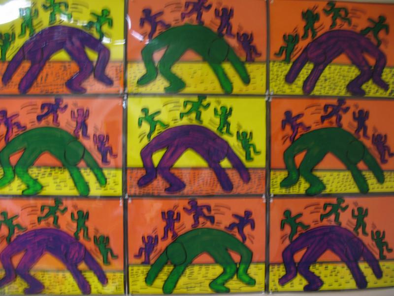 Nous avons découvert un artiste américain : Keith HARING. Ses œuvres se distinguent par des formes simples, soulignées de noir et par le choix de couleurs très vives. En observant plusieurs de ses productions, nous avons constaté que se dégageait de son travail un sentiment de JOIE.