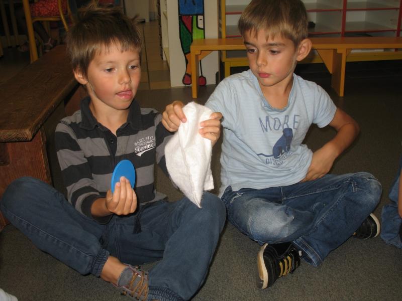 Par un jeu de toucher de formes, nous avons réussi à trier les formes, à constituer 3 groupes et à donner leurs caractéristiques.