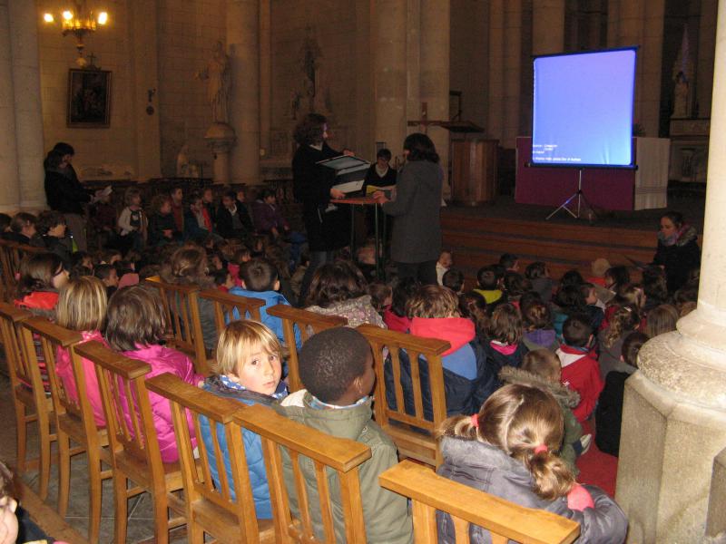 Jeudi 2 avril, les 6 classes de maternelle se sont rendues à l’église du Loroux Bottereau, pour célébrer Pâques ensemble.