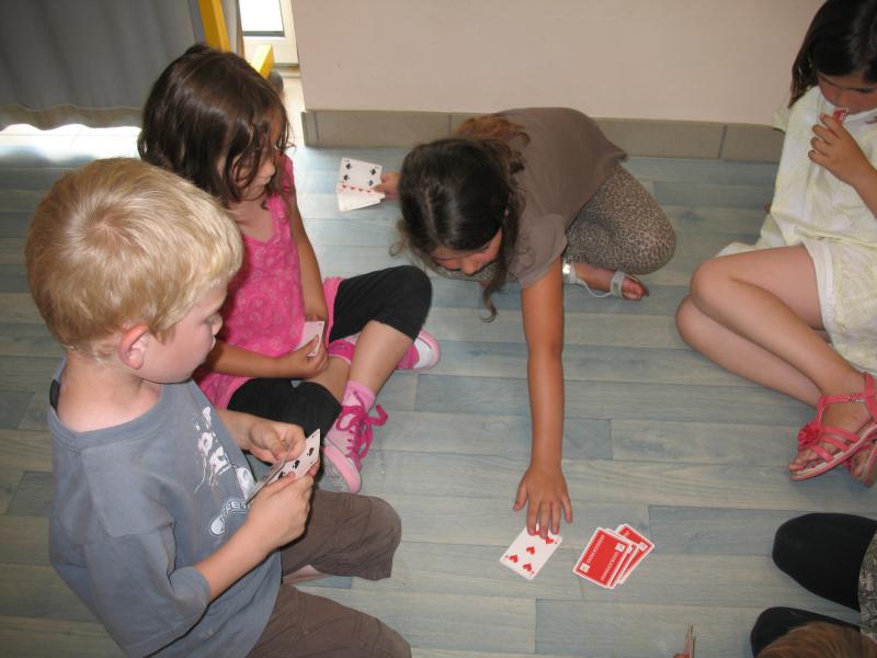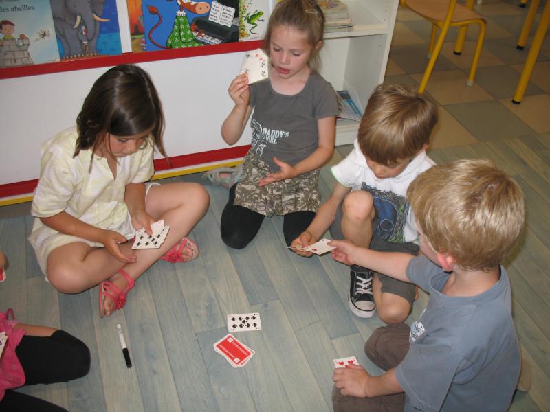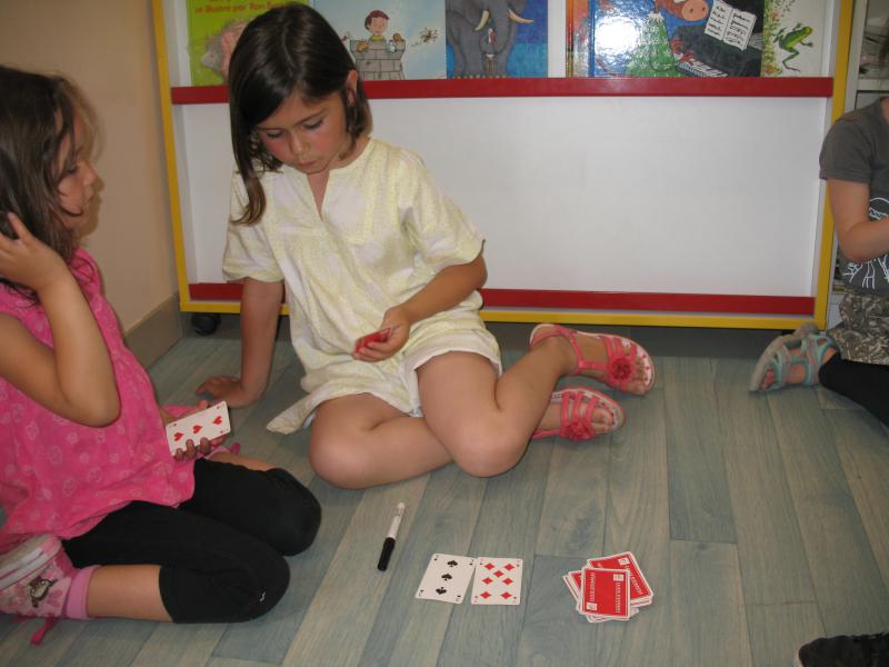 On en profite pour jouer à « 2 cartes pour faire 10 ». C’est simple, si on a une carte qui peut compléter à 10 celle qui est retournée, on gagne, sinon on pioche !