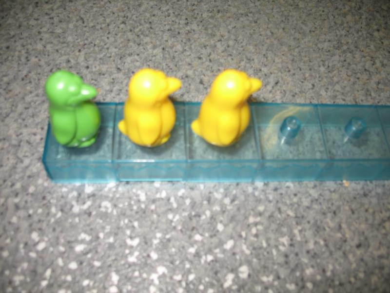 Ils manipulent ensuite des pions, des pingouins… : 1 pingouin bleu et encore 3 pingouins roses ça fait une famille de 4 pingouins sur la banquise !