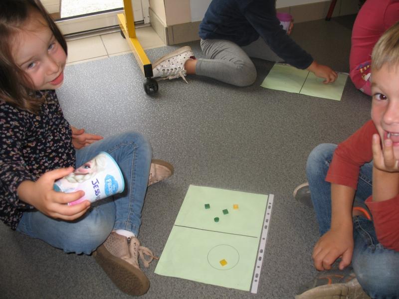 Depuis plusieurs jours, les élèves de GS jouent à décomposer les nombres. C’est à partir de comptines qu’ils découvrent la notion : « Quatre feuilles sur un arbre, une s’envole dans le vent, il en reste 3, … » Et si 2 feuilles restent sur l’arbre, combien de feuilles se sont envolées ?