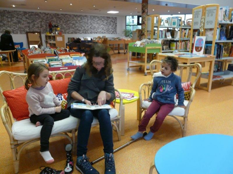 Premier atelier : lecture libre et écoute d’histoires racontées par les adultes.