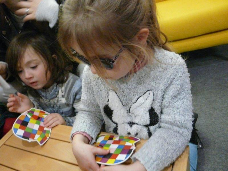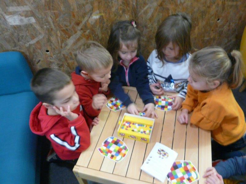 Deuxième atelier : Jeu des couleurs d’Elmer : Chacun leur tour, les joueurs ont pu lancer les dés et compléter leur éléphant multicolore.